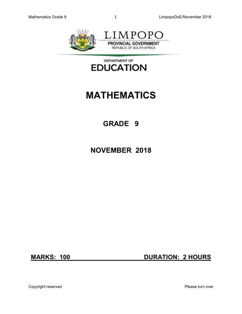 Read Mathematics Grade 9 Limpopodoe November 2014 PDF Audio CD Open Library